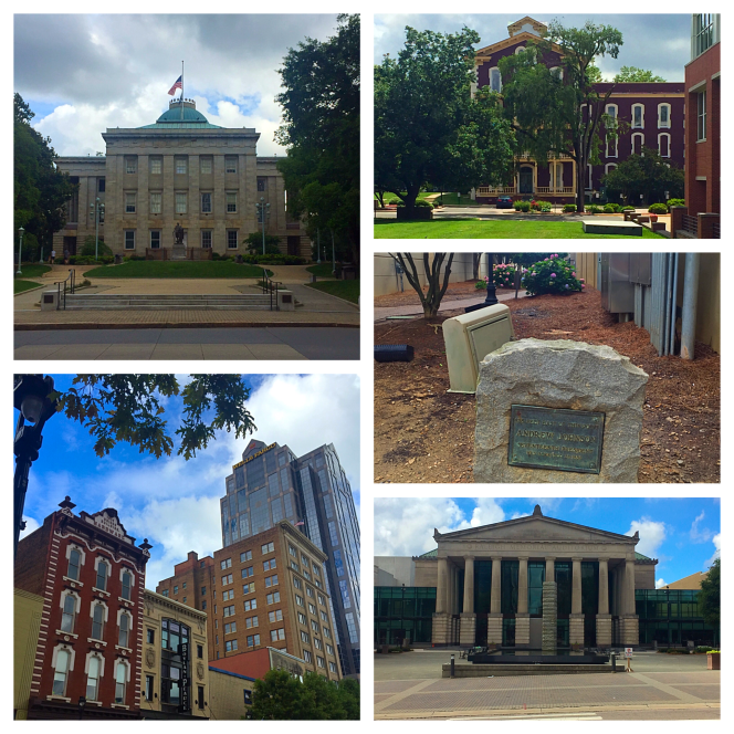 I find myself in Raleigh NC on Memorial Day. Memorial Day is a time to remember those men and women who gave their all so we can live the life we enjoy here in The United States of America. Today at the State Capitol there was a beautiful ceremony with speeches and bagpipes. I went to the Vietnam specific name reading. The men who read the names of the missing from North Carolina made us all feel the pain the families must still feel not knowing the true fate of their loved ones. The State Capitol was the perfect setting for the Memorial Day observance. The Capitol is where you will find most of North Carolina’s history. There are monuments and writings on the vast grounds and all are welcome to sit and contemplate. I walked the Capitol and then went looking for more history in downtown Raleigh. What I found was a college built in the 1800’s and a downtown struggling to find its identity. Fortunately it looked like the brakes were put on before all the cool old buildings were torn down. I took a great picture of the old with the new. It really shows the renaissance Raleigh is going through. It is a nice blend; with friendly people and vibrant and healthy growth throughout. I’m staying in a home built in the early 20th century in an area that is also being revitalized without throwing away the past. The home is just outside the city center which makes much of Raleigh within walking distance. After my walk to the State Capitol and around town I came back to my car because I had one more thing to do and it was going to take a bit of a drive.